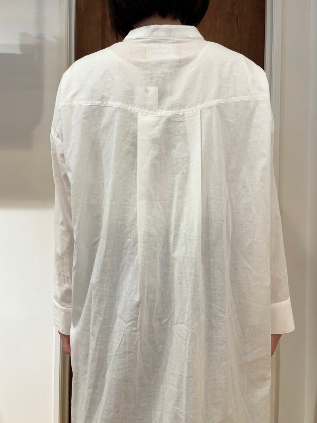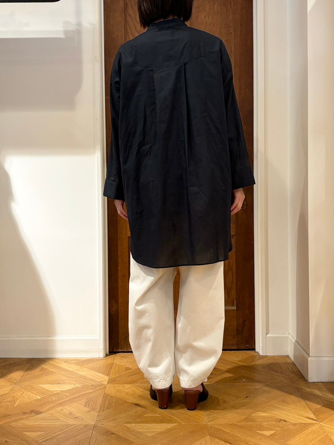 the light, sheer cotton makes it also suitable for pairing with wide-leg pants or a long, tight skirt to achieve a sleek I-line silhouette.