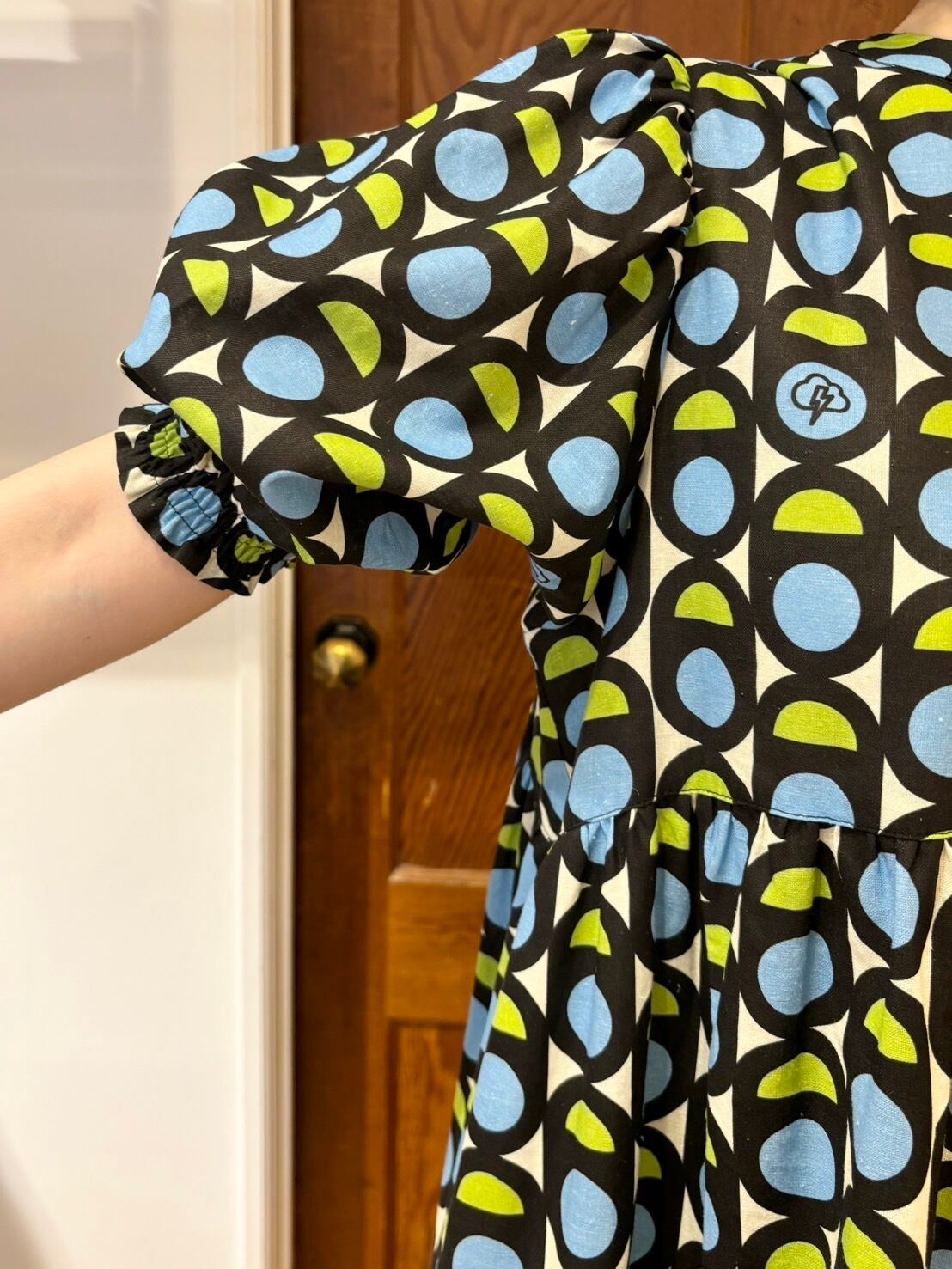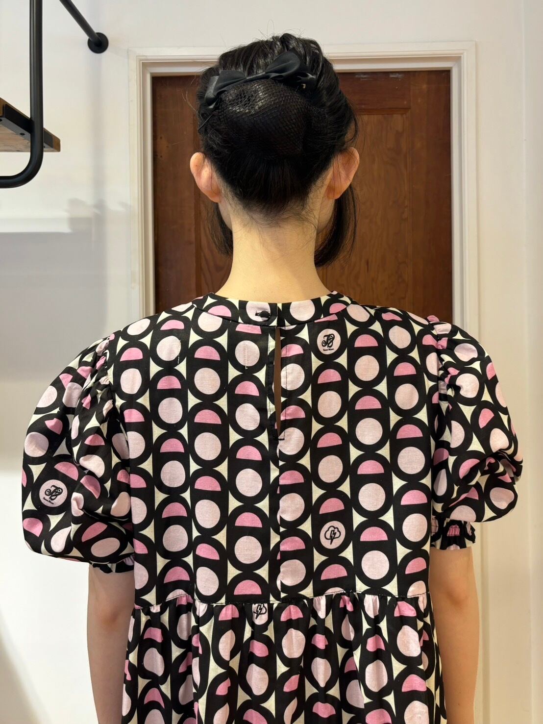 たっぷり取られたギャザーと生地のハリ感が相まって贅沢感のあるボリュームを生み出しています。パフんとした袖もカワイイ。