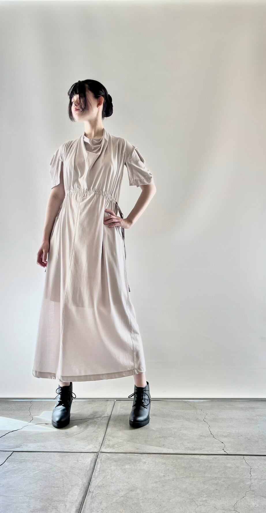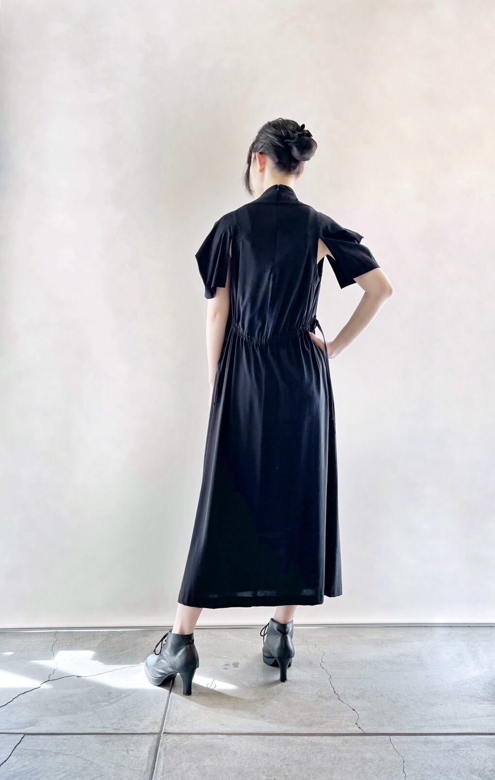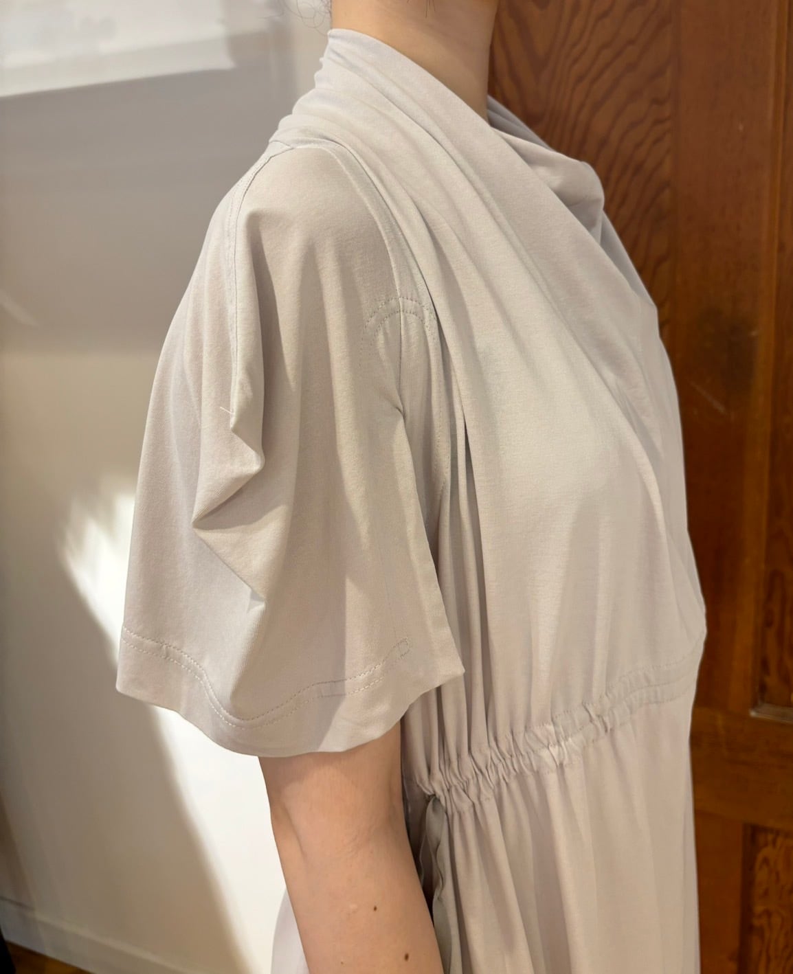 ツンと立ったケープをかけたような袖デザインは、腕回りをスッキリ見せる効果アリ。