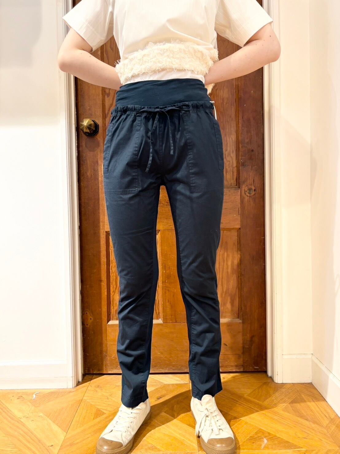 脇と股下にカットソーを組み合わせたハイブリッドパンツ。スリムながら締めつけ感のないストレスフリーなパンツです。