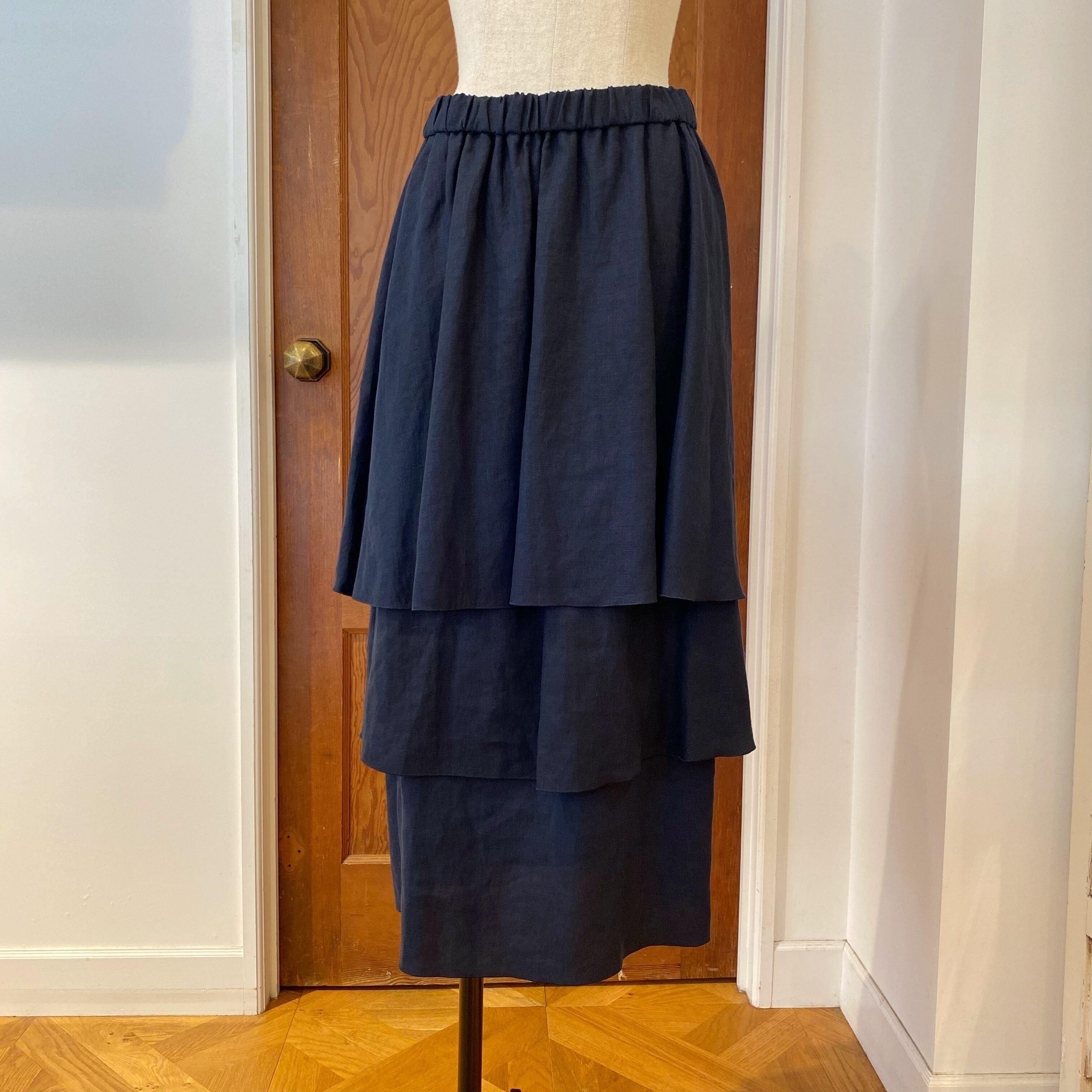 麻100%のティアードスカート