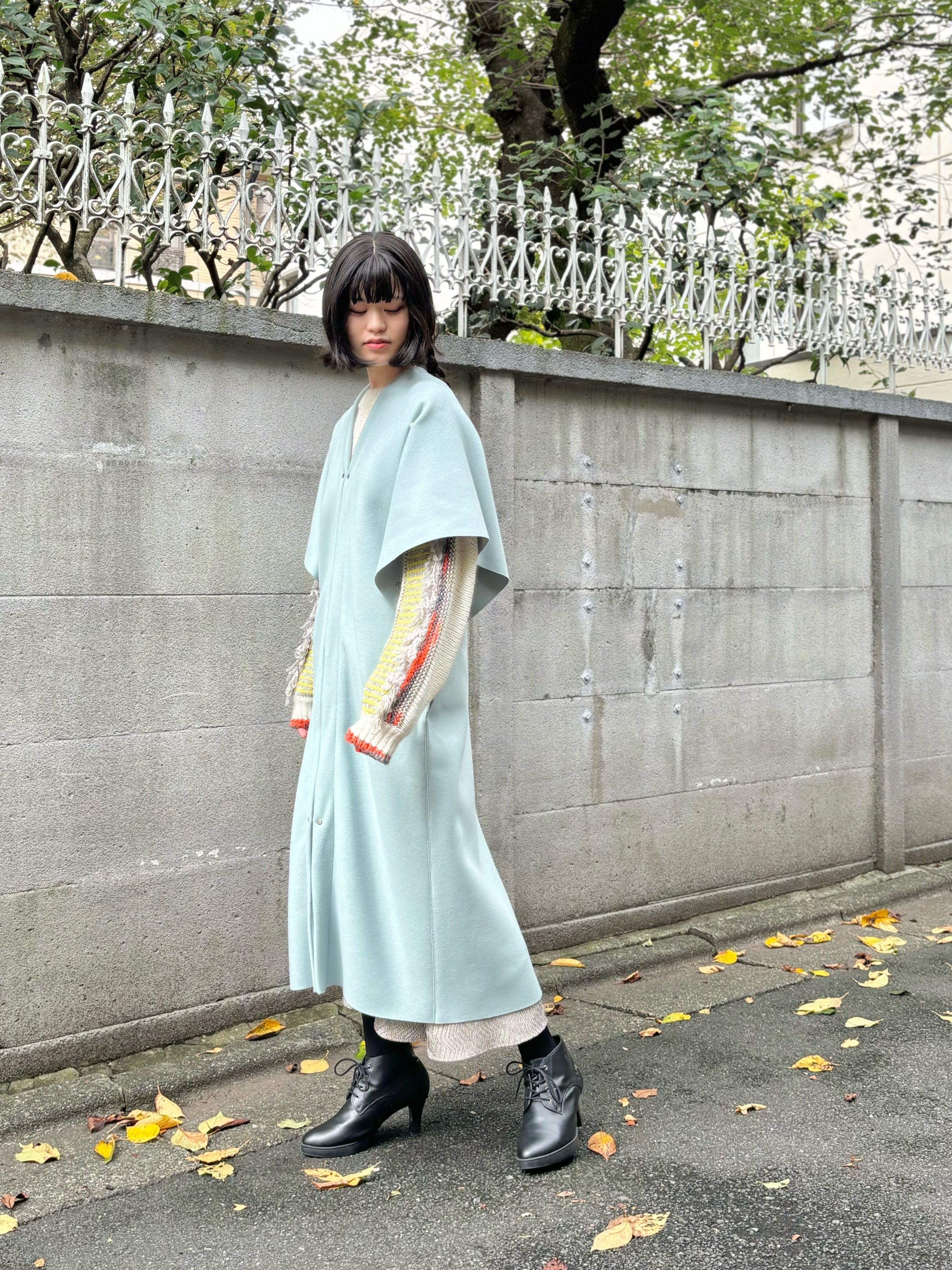 Some people might not like their skirt peeking out from under their coat, but as the shop owner, I think it's quite cute!