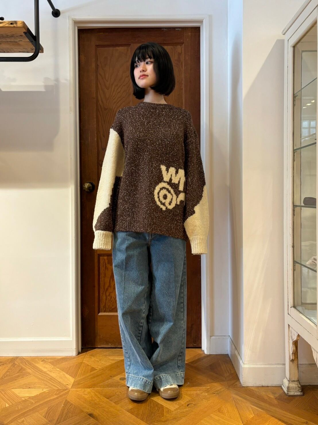 霜降りのように白が入った編地、配色のバランス、ロゴの配置、オーバーサイズ感、それぞれの要素がとてもバランス良くデザインされたニット。
